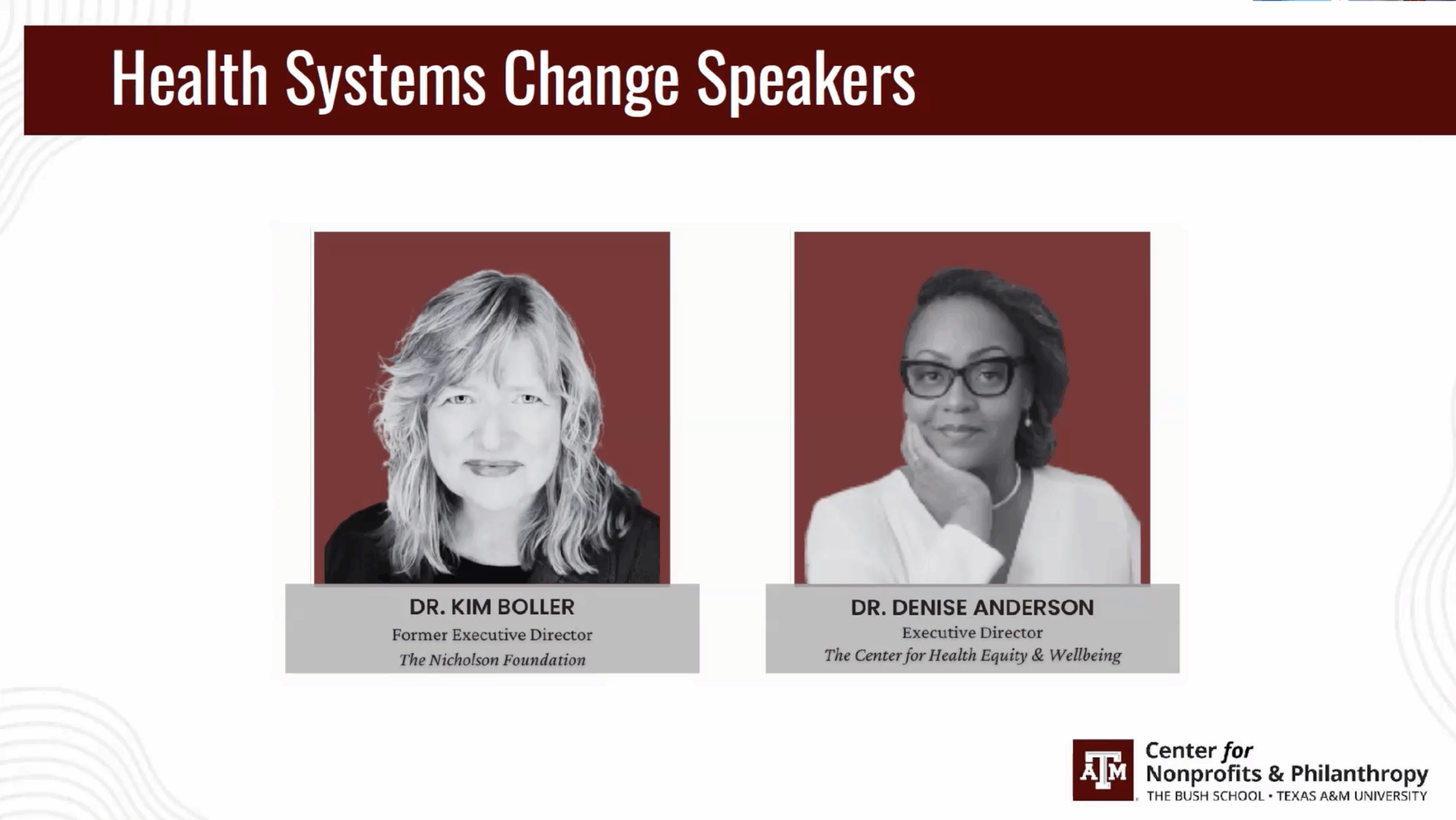 - First, Dr. Kim Boller introduces her fellow panelist, Dr. Denise Anderson.